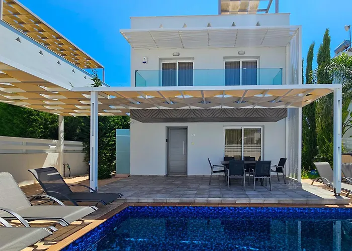 In 1 km Entfernung vom Nissi Beach gelegen, bietet die 2-Zimmer- Nissi beach villa Azure Agia Napa Zugang zu einer Terrasse sowie einen Ausblick auf den Garten.